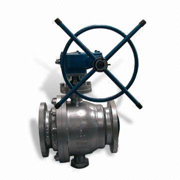 Valve à boisseau sphérique en acier moulé avec boule flottante et arbré.